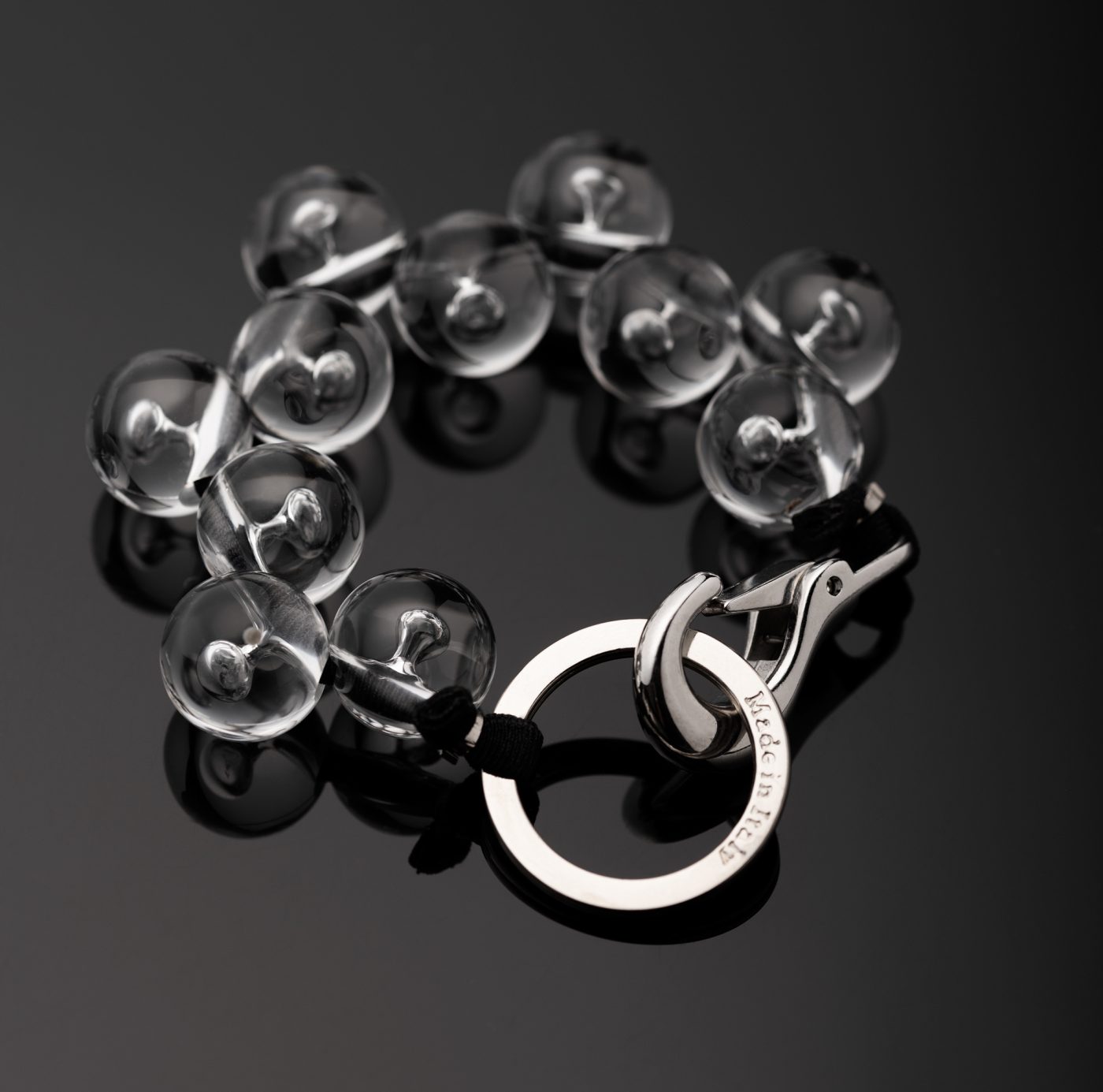 Ballsy Charm: 11 spheres, each 16 mm in diameter, with nickel-free metal accessories, total length of 20 cm.