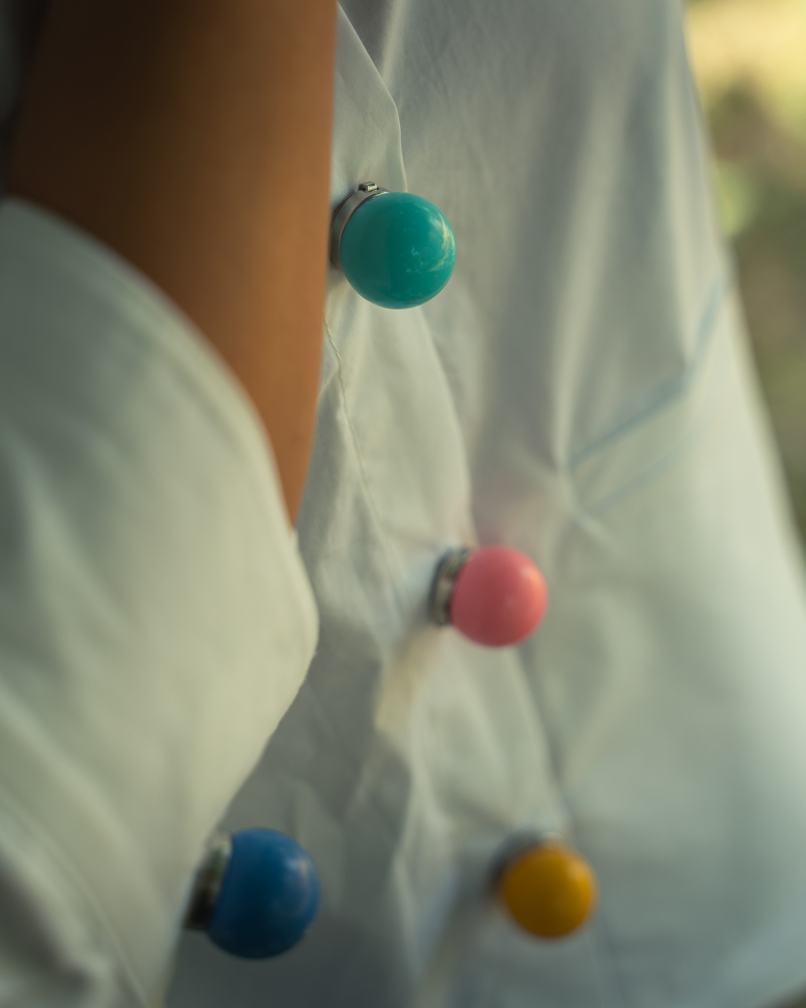 Un piccolo accessorio, una grande idea: le sfere colorate iconiche di Ballsmania diventano copri-bottoni, trasformando un dettaglio spesso invisibile in un punto di stile e personalitร .